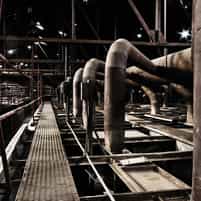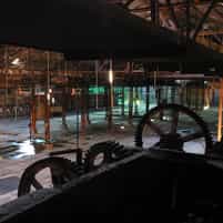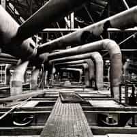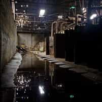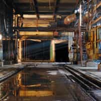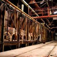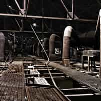 View gallery with title: Copper Cliff Iron Ore Recovery Plant - A huge industrial complex, for the separation of iron from waste ore. Interior photos of the various pieces of equipment, rooms and dark spaces.