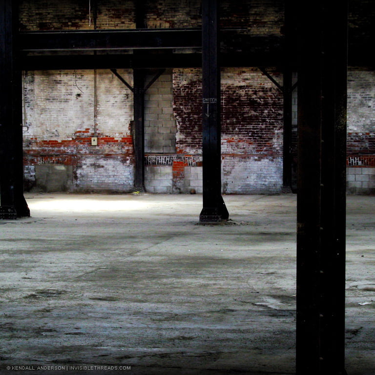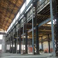 View gallery with title: American Can Company - A 3-storey manufacturing facility from 1929, long-abandoned and under significant decay. Interior photos of this gutted facility, including the top floor which is missing its roof.