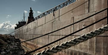 View gallery with title: Shipbreaking Yards - Industrial disposal and recycling on a huge scale. Interior and exterior photos of boats in a ship breaking yard, in the process of dismantling.