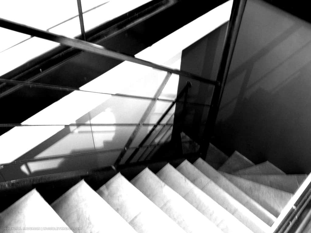 These are the stairs leading down to the other floor of our office. Unlike the TTC escalators, these are never shut down for maintenance. There is a actually a good variation of colour in the original image but I much preferred it as a black & white given the criss-crossing lines and soft-shadows.