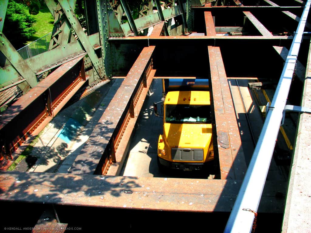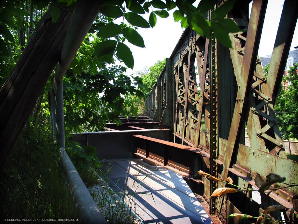 Well, I wandered up to the bridge expecting to find tracks and was surprised to find that the tracks actually travel in another direction, and that the side of this bridge is just a remnant of history. There is another handrail and barrier preventing people from falling over the edge so I'm happy to know that someone decided to keep this leftover intentionally.