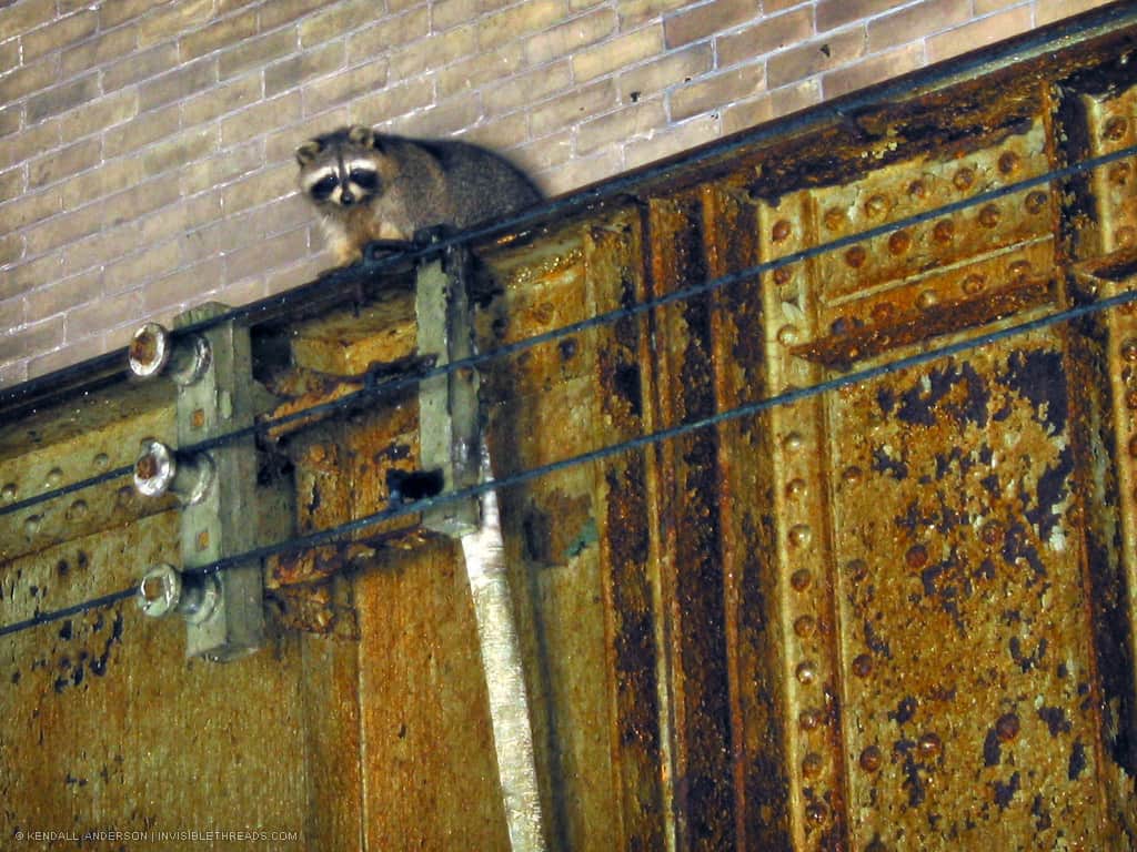 This guy was racing from one end of the building to the other on the upper ledge of the beam. The camera flash stunned him for a good minute which gave me time to setup a longer exposure. But still, it's just a boring raccoon.