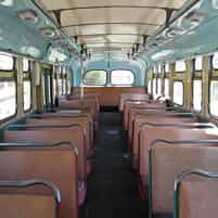 View photo with title: Teal and Brown Bus Interior View photo with title: Teal and Brown Bus Interior