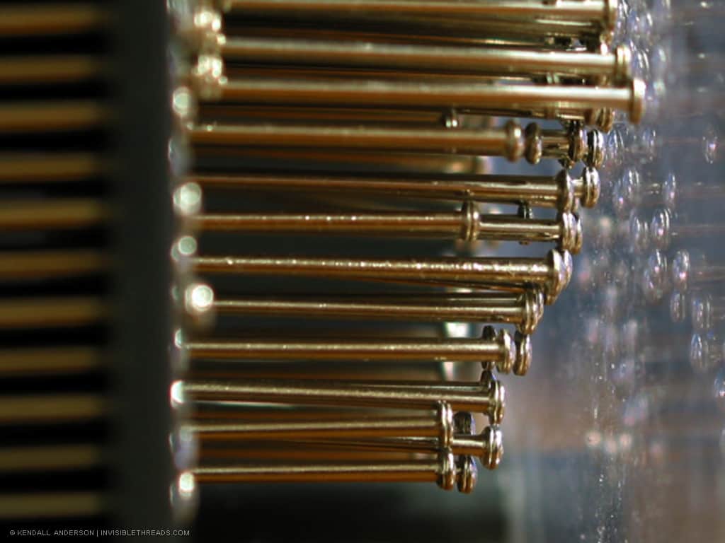 This is one of those toys which takes the impression of an object and displays it with a matrix of pins. It has been sitting around our office for a few years (I think it is an abandoned 'Secret Santa' gift), and usually has a lonely Star Wars figure embedded into its side.