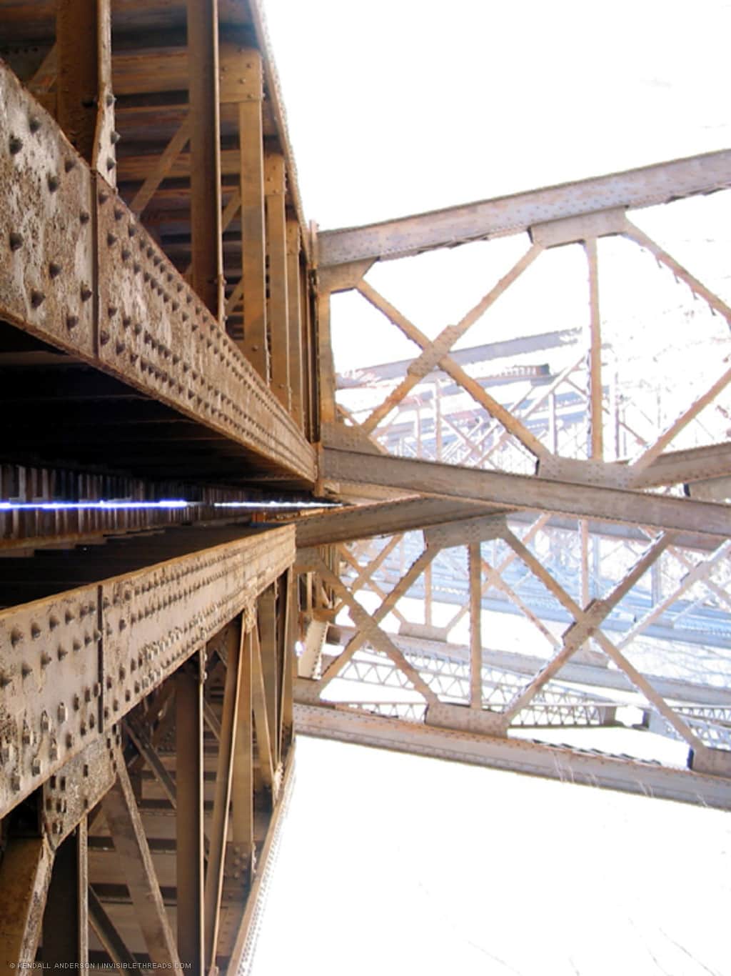 This image of the underside of a bridge is rotated 90 degrees counter-clockwise. At Eglinton and Leslie is a park with walking trails which pass underneath this old bridge. While Jenn waited for me, I hiked up the hill until I could get to the top of the bridge to take some shots. In this case I preferred this rotated view.