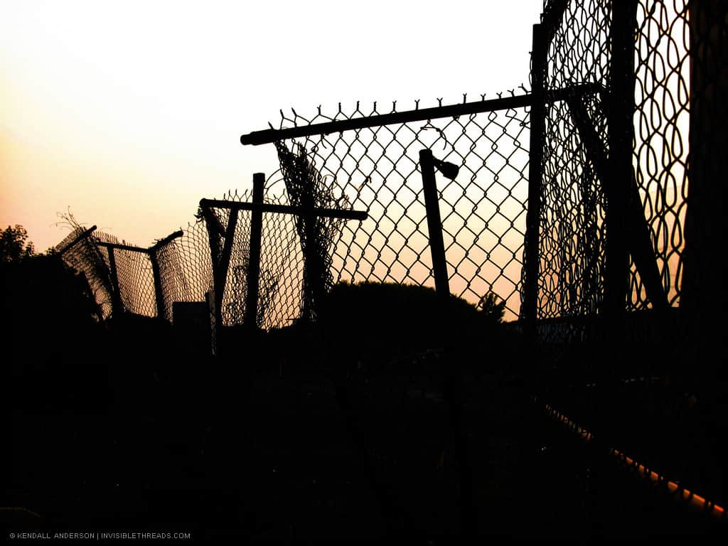 I'm a sucker for chain-link fences, especially these 'silhouette by sunset' shots. I don't know why but I really enjoy this shot. It's fairly simple and there isn't a lot of variety in the image — effectively it's a one-liner. There's nothing else to see on later viewings and yet I still find this pleasing.