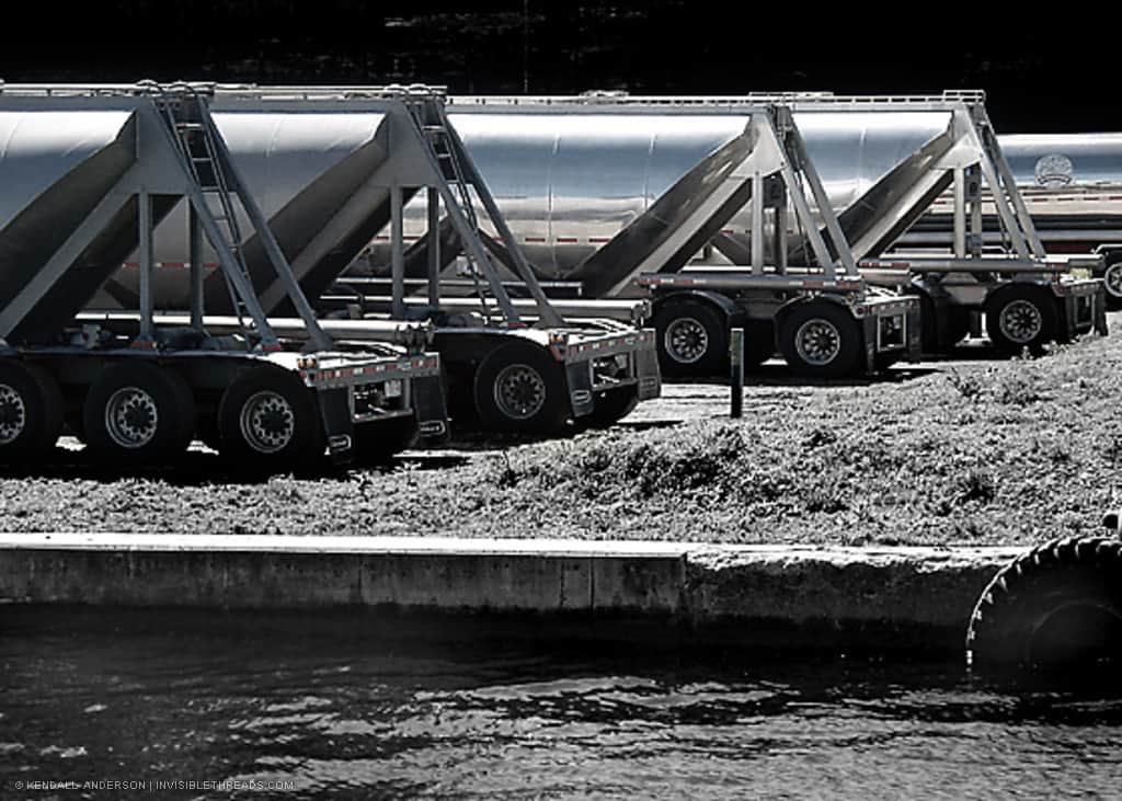 These trailers are about to be taken on a long.. journey — the theme for this week's PhotoFriday challenge. The trailers are in front of a large freighter at the docks by Cherry Beach (the large black shape behind the trailers is the freighter).