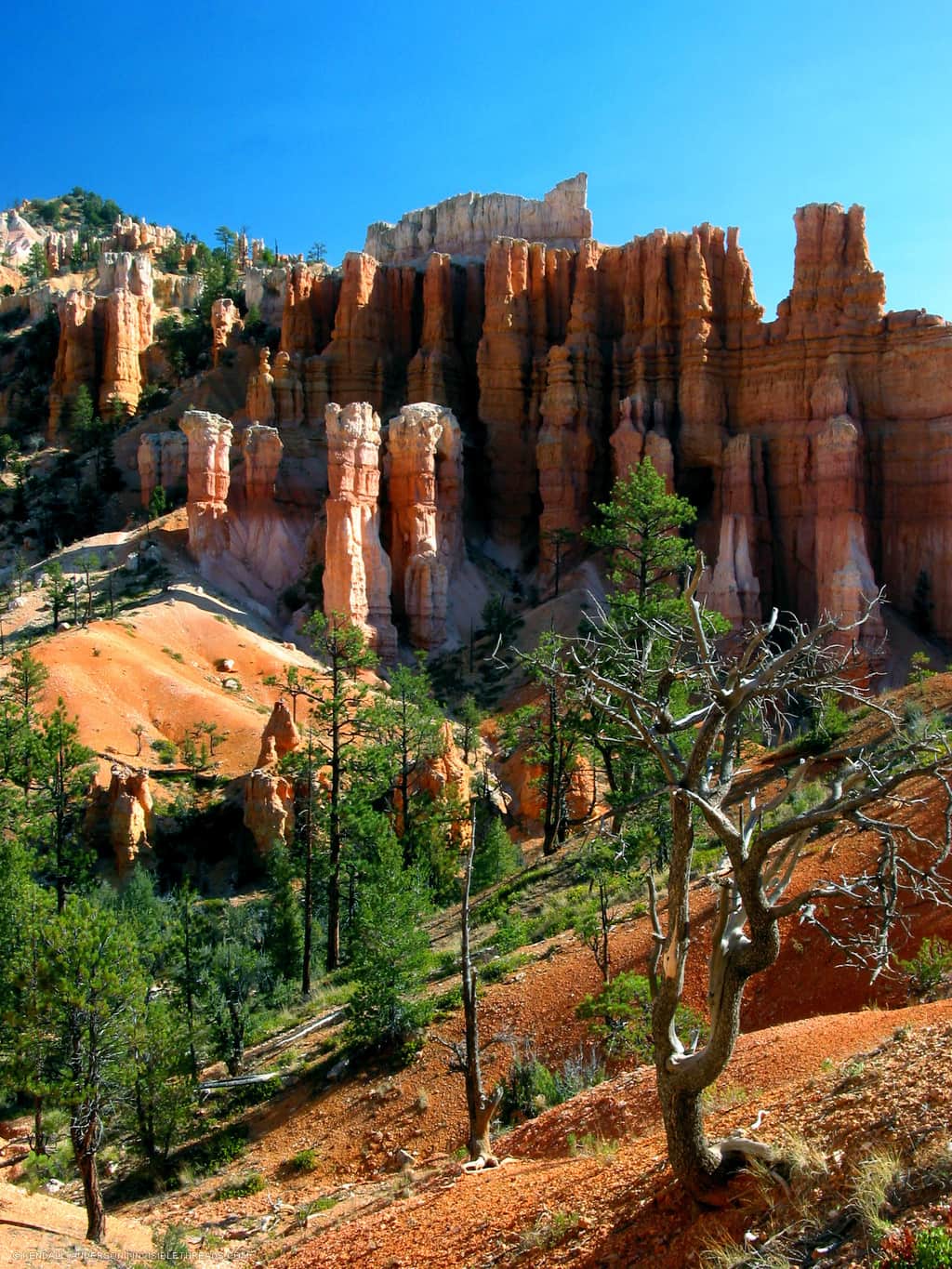 The last photo shows a few things. One — the light quality — the rock literally glowed orange (that's not a Photoshop adjustment!). And second, the trees are clinging to the soil/sand/rock — and that ground is slowing eroding beneath the growth so you typically see the root systems of the trees.