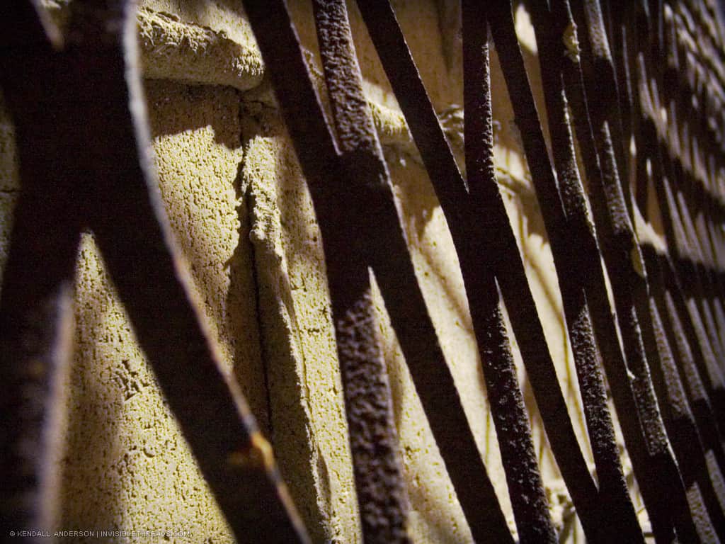 So I was wandering around behind the old Toy Factory building and found a few windows that finally let me see inside the place. Unfortunately, it was fairly boring so I took these shots of the metal grating over the windows.