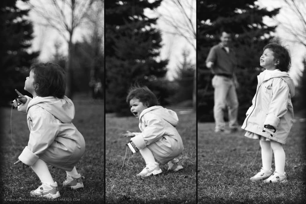 This littly triptych describes my niece's first experience trying to fly a kite. It's up, it's down, it's over.