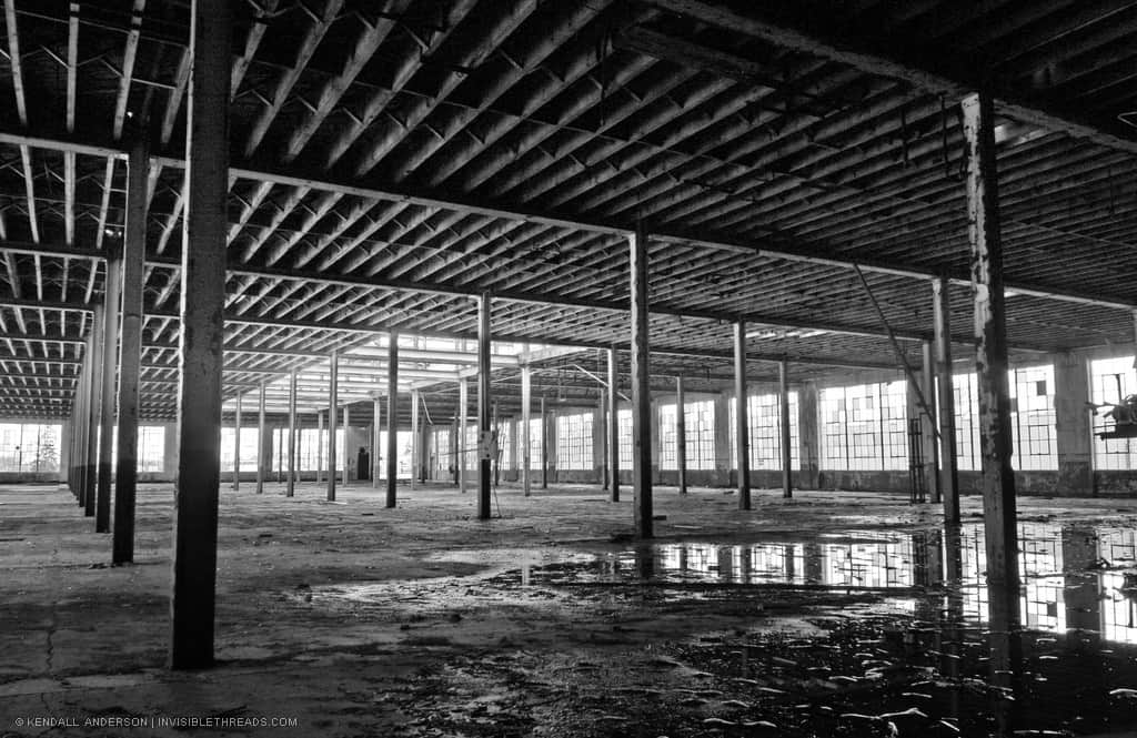 Standing water is also present on the second floor. While the floor looked like it was in reasonable shape from below, the case is much different once you reach the second floor. Large cracks and unquestionably unsafe areas are present — concrete doesn't fare so well once water has a chance to accelerate the process of decay.
