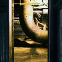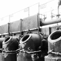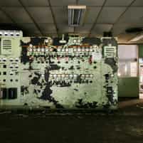 View gallery with title: Richard L. Hearn Generating Station - Interior photos of a huge coal-fired electrical generating station in Toronto, Canada. This is industry on a huge scale, with a turbine hall, control rooms and vast, complex spaces.