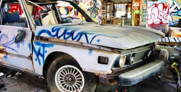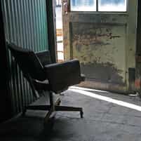 View gallery with title: Crangle's Collision - Interior photos of a large autobody shop in Toronto, Canada, in mid-demolition. Includes the original 1940s office area as well as the maintenance bays.