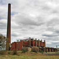 With the exception of the 194 meter (637 foot) tall stack — which was re-routed to a nearby facility — the plant was decomissioned and now sits unused. Unfortunately I haven't been able to find any other information about this facility.