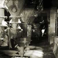 View gallery with title: Richard L. Hearn Generating Station - Interior photos of a huge coal-fired electrical generating station in Toronto, Canada. This is industry on a huge scale, with a turbine hall, control rooms and vast, complex spaces.