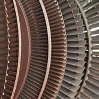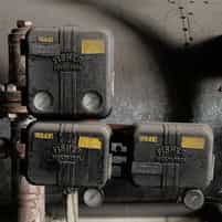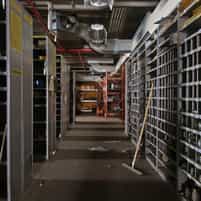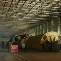 View gallery with title: Richard L. Hearn Generating Station - Interior photos of a huge coal-fired electrical generating station in Toronto, Canada. This is industry on a huge scale, with a turbine hall, control rooms and vast, complex spaces.