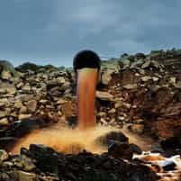 When part of the landscape is sectioned off, contained, and pumped with tailings, it's known as a tailing pond. These can be huge. They're the most visible environmental consequence from the mining industry.