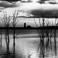 In the case of our visit, we encountered tailing ponds that covered 25 km2 (10 mi2) in the town of Lively, just west of Sudbury. Over time, the tailing ponds are slowly filled. In some cases you can see how much has been filled in by spotting partially buried trees. The effect is bizarre, beautiful and sad at the same time.