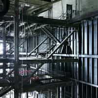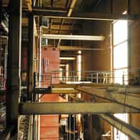 View gallery with title: Copper Cliff Iron Ore Recovery Plant - A huge industrial complex, for the separation of iron from waste ore. Interior photos of the various pieces of equipment, rooms and dark spaces.