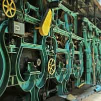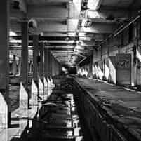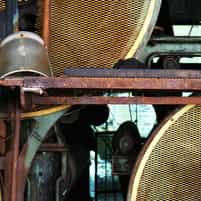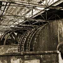 View gallery with title: Grain Elevators - Interior photos of the concrete towers and equipment inside used to store and unload grain, in Buffalo, New York.