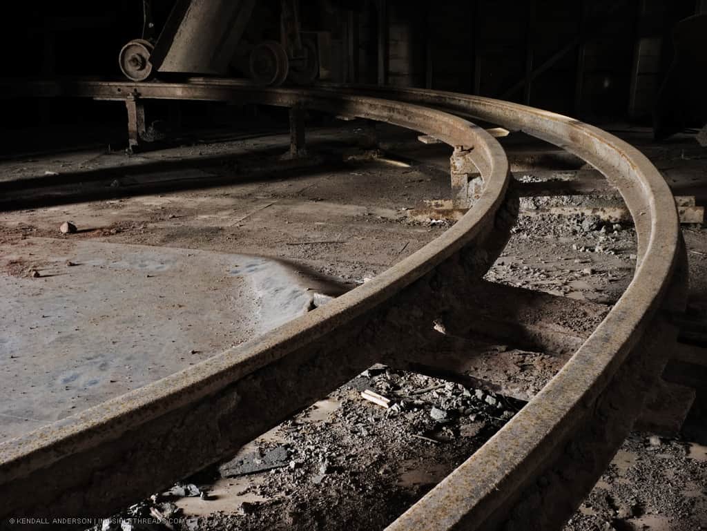 On the roof of one of the ancillary buildings is a small room containing a piece of equipment which runs back and forth on a small semi-circular piece of railway track. Unfortunately the equipment is less interesting than the track...