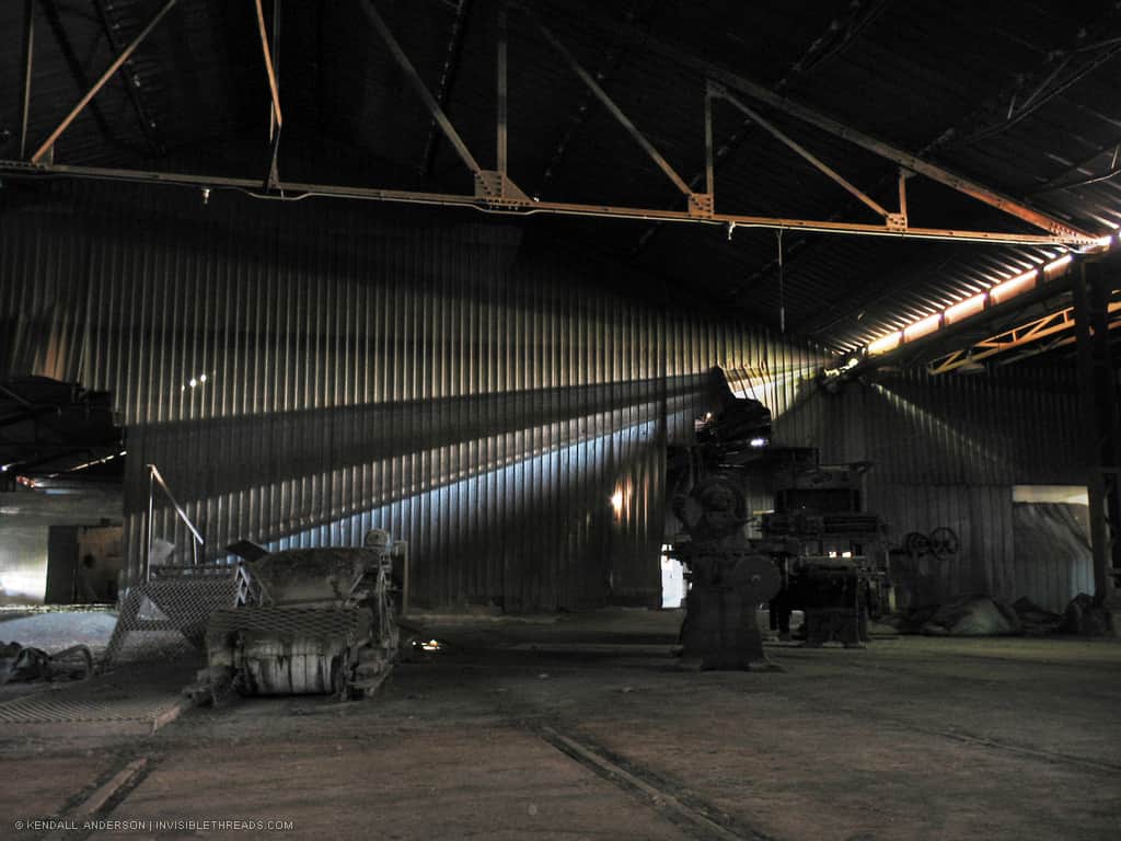 A natural prism seems to have been created in one of the rooftop gaps between the main shed and one of the smaller ones. As the light streamed through it separated into a few distinct colours and patterns.